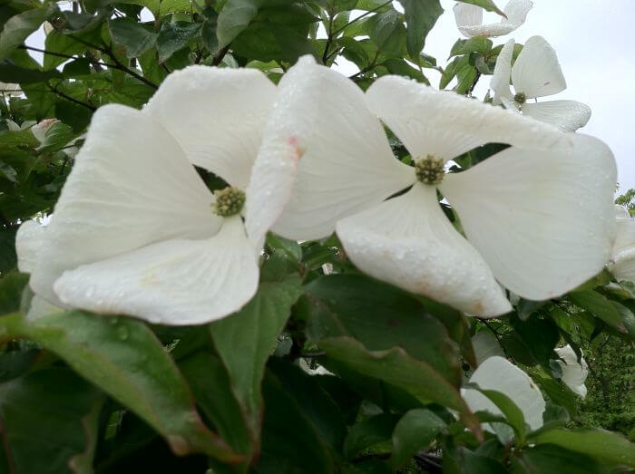 This Rutgers University hybrid (Cornus kousa x C. nuttallii) produces very large creamy white flower bracts up to 8 inches across. A vigorous grower with a good tolerance to drought a high resistance to Powdery Mildew and Dogwood Anthracnose. Glossy dark green summer foliage dark red-orange fall color. A Great Plant Picks™ selection.