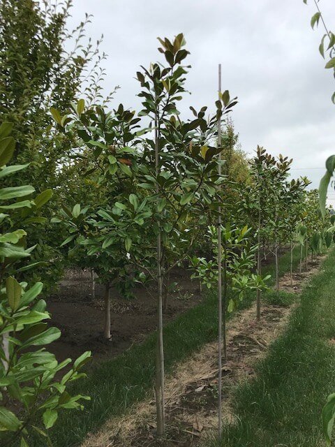 Evergreen magnolia with shinny dark green leaves and. Large creamy white flowers of lovely fragrance. Needs a large space as may grow to 40'+. Slower growing in PNW environs. Necessary to shake snow from branches to avoid breakage. Native southern USA.